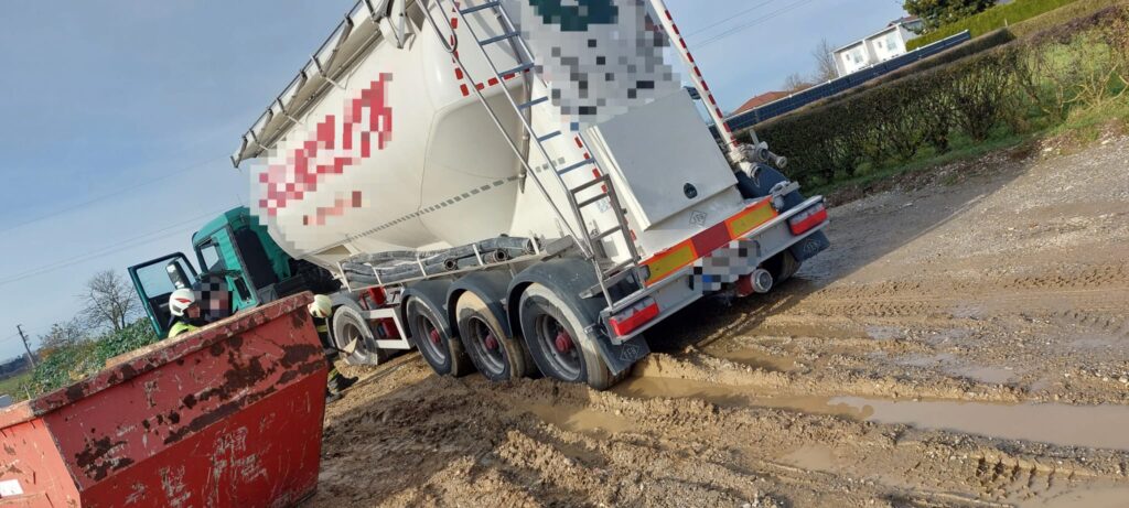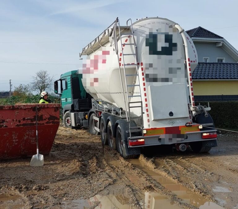 Ein LKW versank aufgrund von einem missglückten Wendemanöver im Schotter und Schlamm. Da der Fahrer weder nach vor noch zurück konnte verständigte er die Feuerwehr. Nach ca. 1 Stunde war das Fahrzeug geborgen und die Geräte wieder gereinigt.