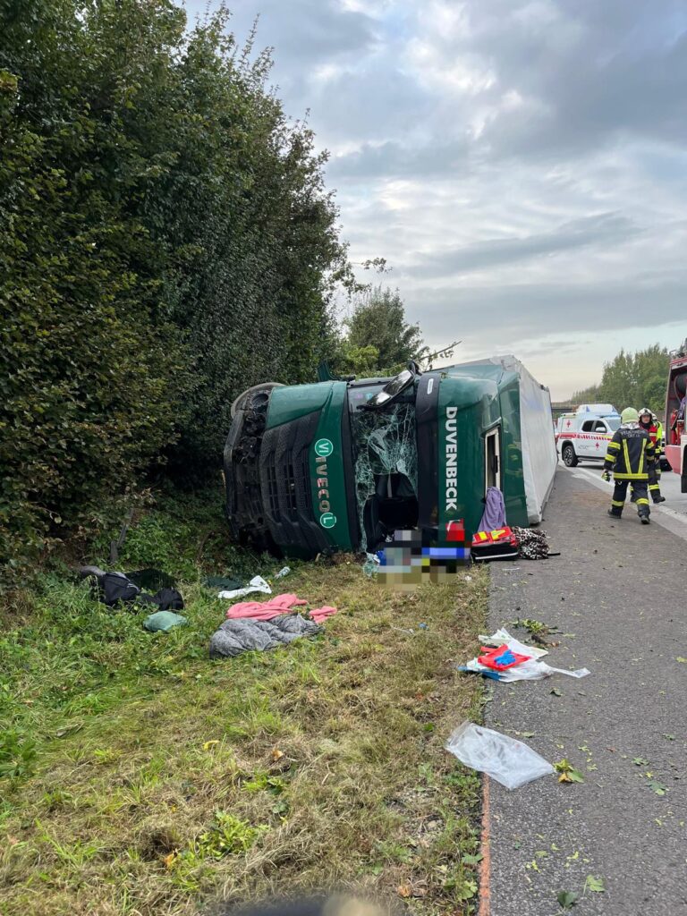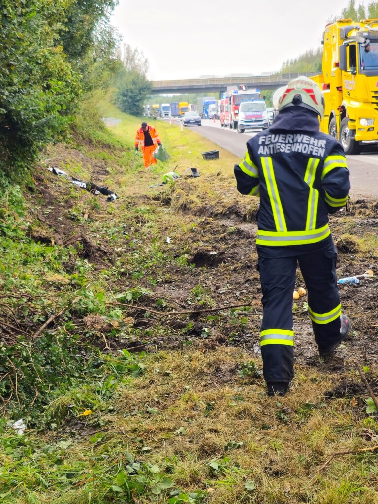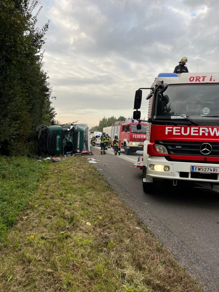 Ein LKW war in einen Unfall verwickelt, und die Lage konnte bereits bei der Anfahrt von der Autobahnbrücke in Antiesenhofen eingesehen und bestätigt werden.