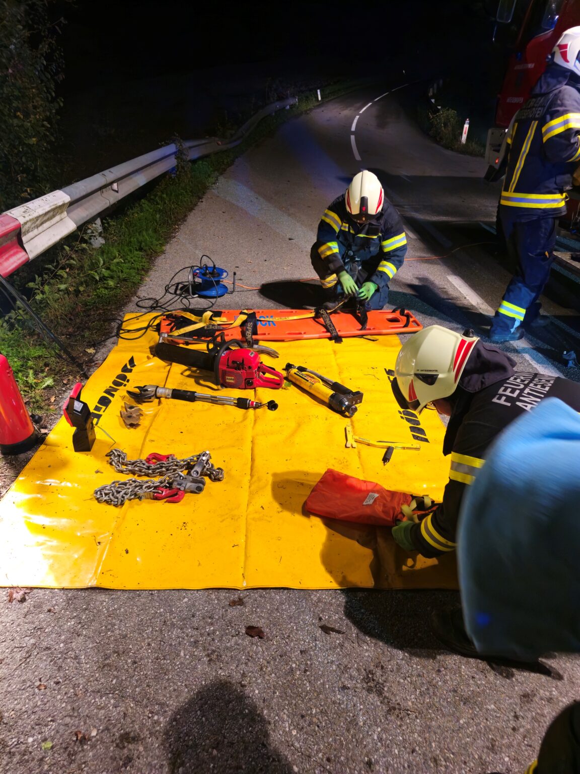 Nachdem die eingeschlossene Person befreit worden war, konnten wir in enger Zusammenarbeit mit der Feuerwehr Reichersberg mithilfe eines hydraulischen Rettungsgeräts auch den Fahrer erfolgreich retten. Beide Personen wurden anschließend dem Rettungsdienst übergeben und mit Verletzungen unbestimmten Grades in das Krankenhaus Schärding und Ried eingeliefert.