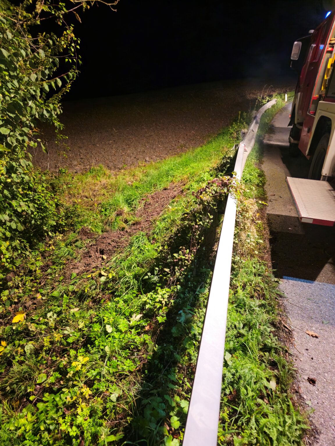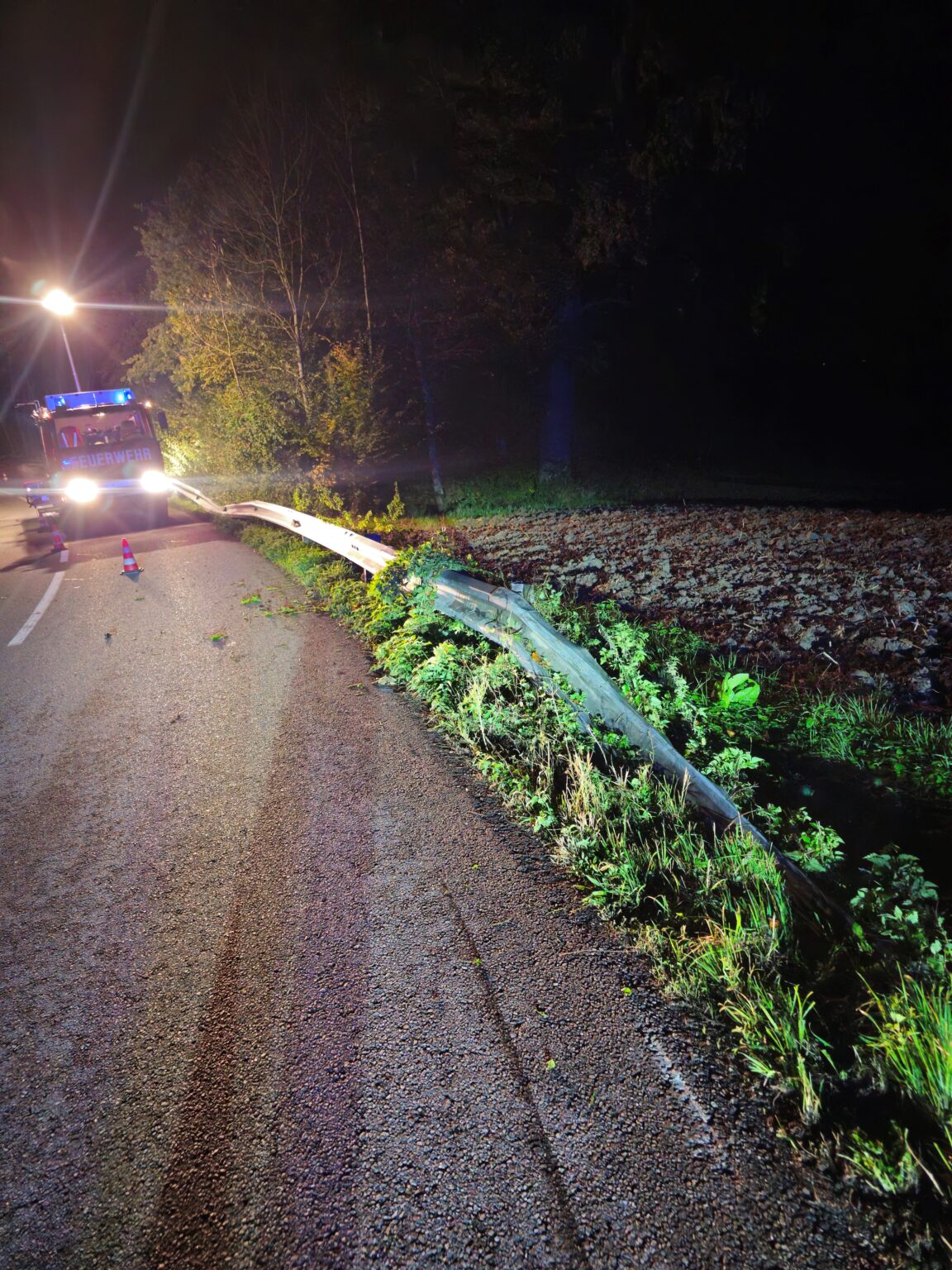 Aus noch ungeklärter Ursache kam ein PKW von der Straße ab, touchierte eine Leitplanke und kam an einer schwer einsehbaren Stelle seitlich zum Stillstand. Glücklicherweise konnte einer der Insassen noch rechtzeitig einen Notruf absetzen.